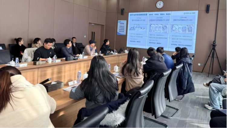 王骏杰陪同全体师生参观公司信息展厅,重点介绍重离子治疗技术及其配套装置。刘主任表示,企业已自主掌握医用重离子治疗装置从设计、生产到调试、运维的全链条能力,在国内率先实现了该领域的全产业链覆盖。