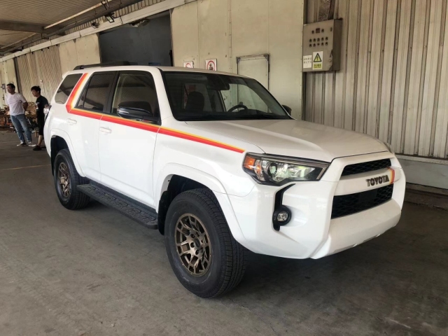 加版丰田超霸 侧面来看,4Runner整个车身造型看起来较为方正,而方正的轮框设计看起来也更加硬派,宽大的D柱更是增加了几分硬汉的味道,不过还是那句话,这个汉子 相比普拉多真的要细腻许多,车身尺寸方面,这辆车的长宽高分别为4823*1925*1885mm, 轴距2790mm,外观尺寸长度和普拉多基本一样,车子比普拉多矮一点,宽一点。